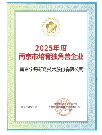 宁丹新药再次成功入选“2025年度南京市培育独角兽”